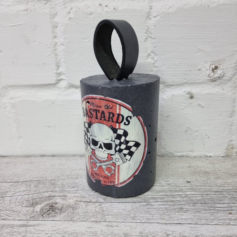 Schwerer Türstopper im Vintage Look, die Handschlaufe ist aus recyceltem PU Leder.