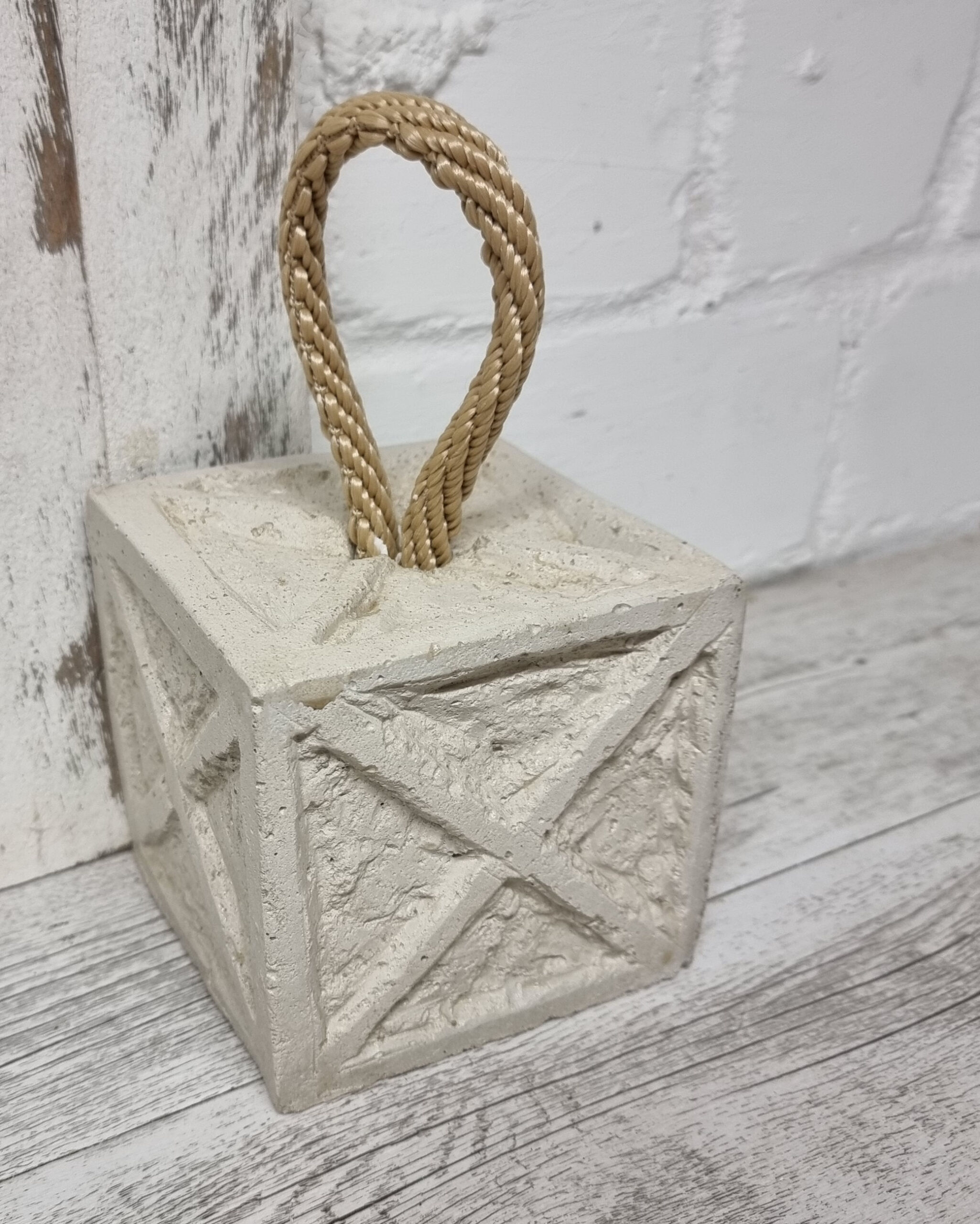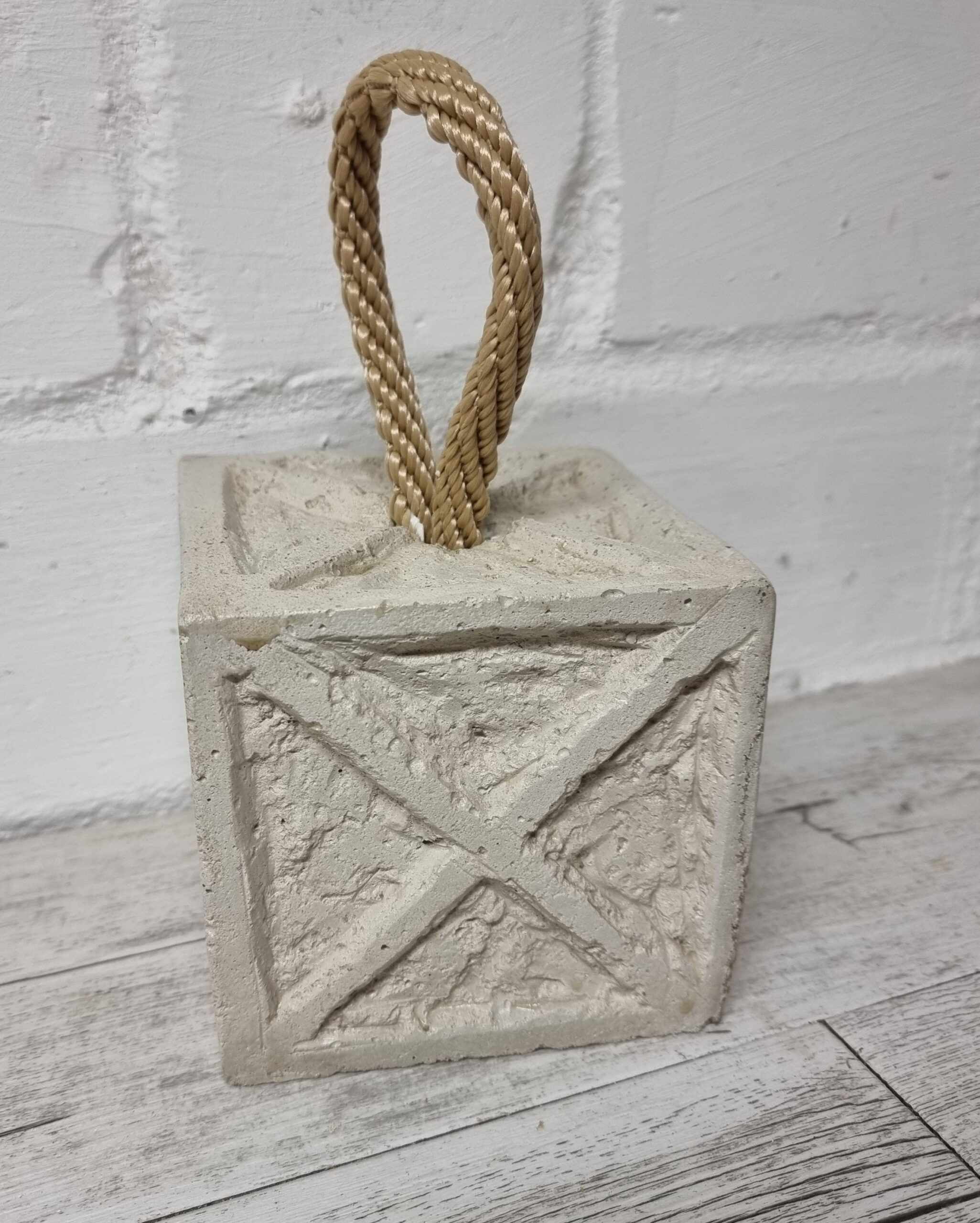 Handgefertigter Türstopper aus Beton mit Reliefoberfläche