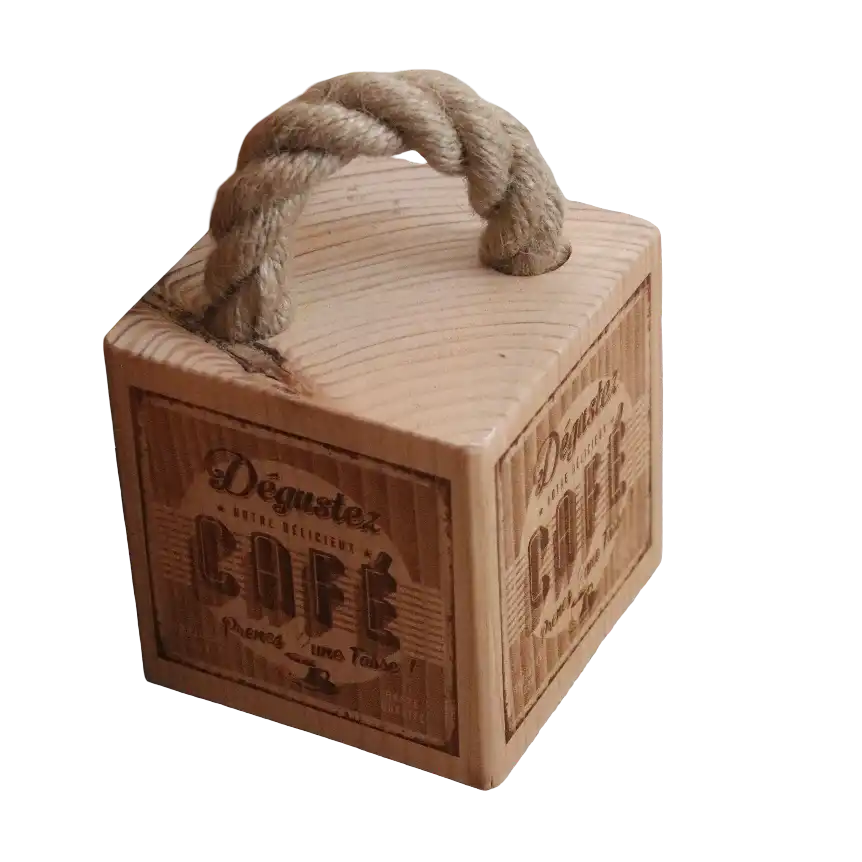 im Naturholz Look mit vierseitigem Café Motiv
